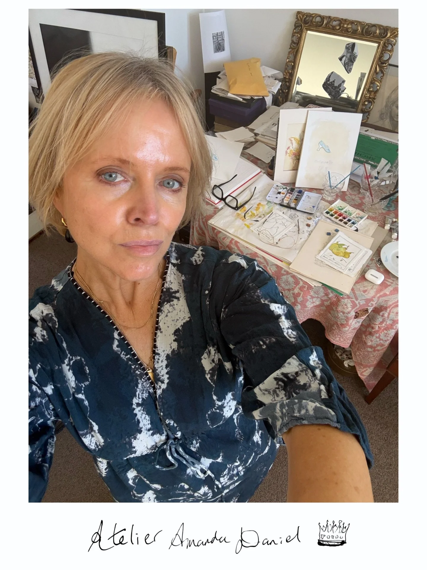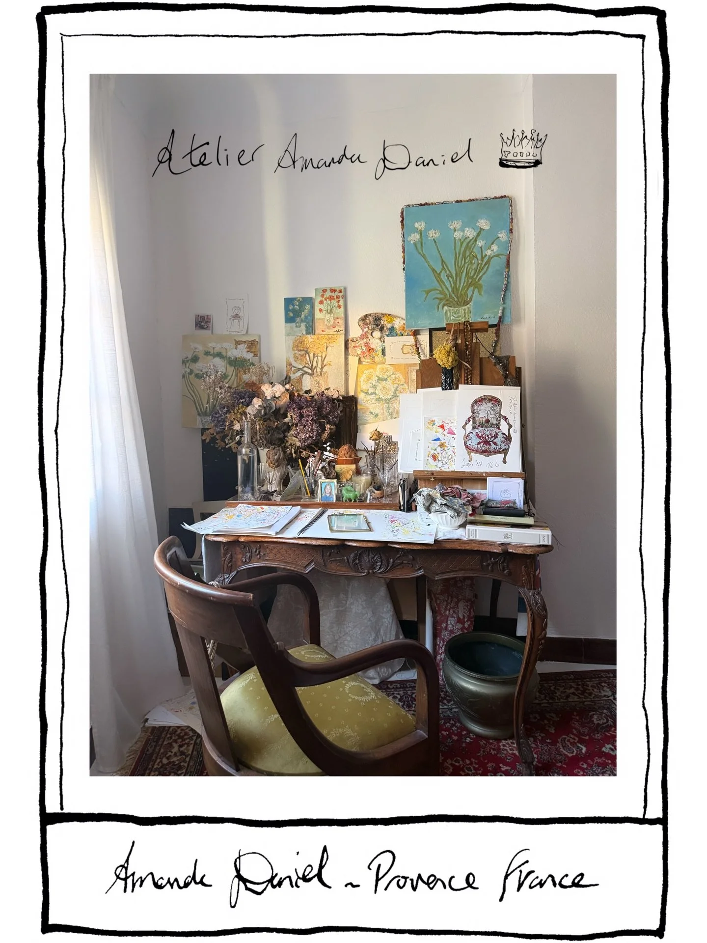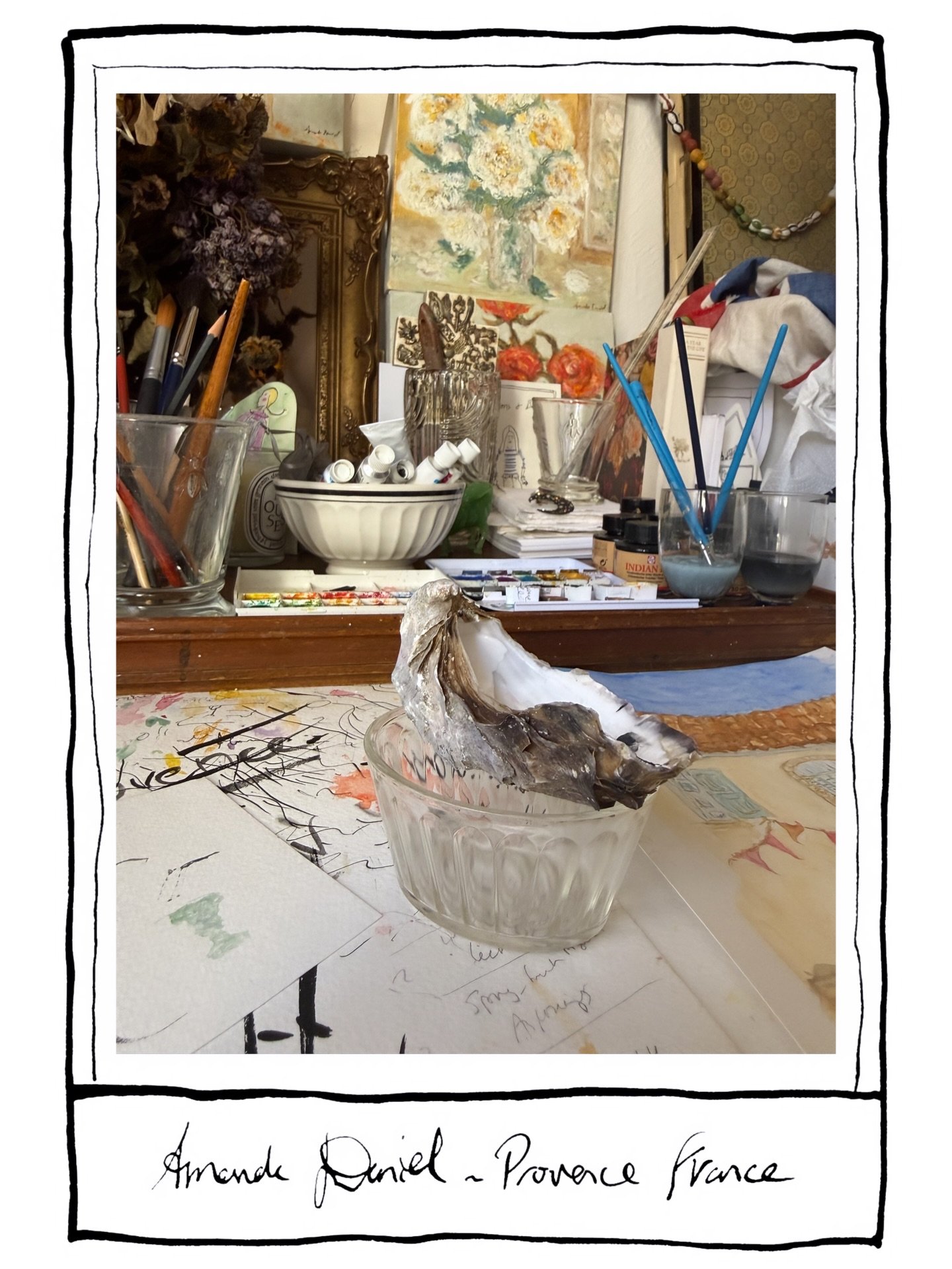 Inspiration: Amanda is self-taught, believing that the truth of knowing oneself is evident in her work. Her art is whimsical and poetic, drawing inspiration from a life in France, still life, Provence souvenirs, and objects of desire.