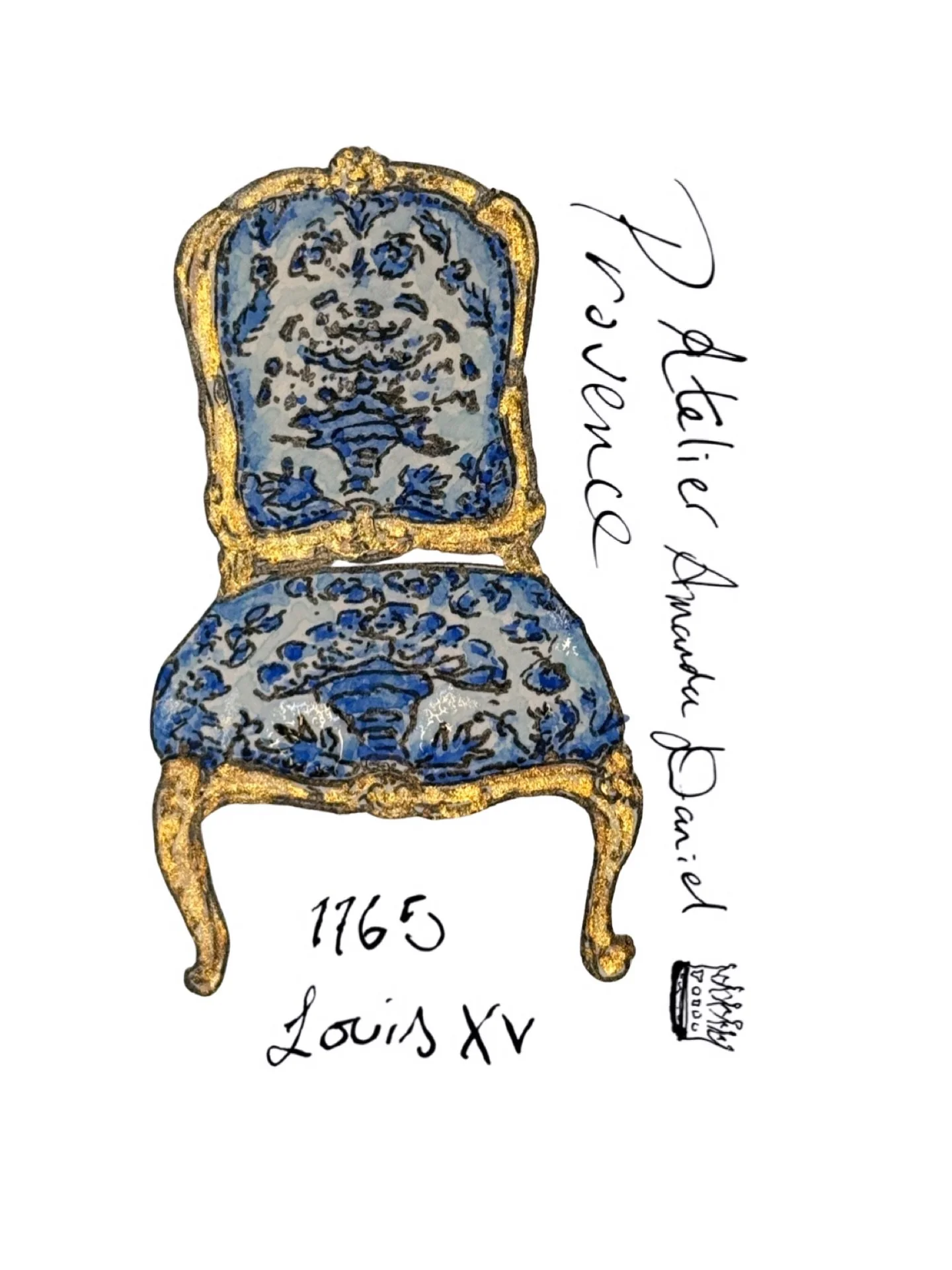 French line drawing, ink dip fountain pen & watercolour by Amanda Daniel.