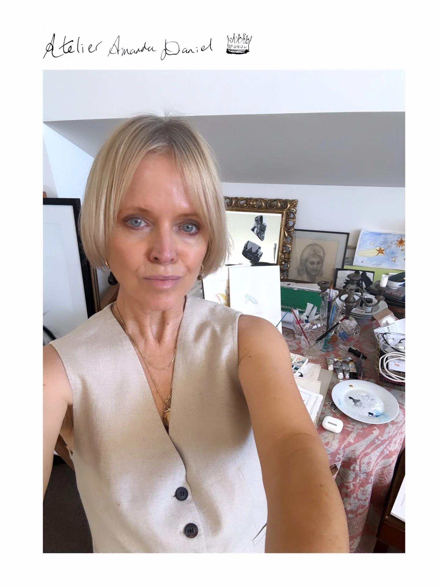 Inspiration: Amanda is self-taught, believing that the truth of knowing oneself is evident in her work. Her art is whimsical and poetic, drawing inspiration from a life in France, still life, Provence souvenirs, and objects of desire.